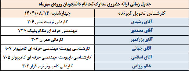 دانشجویان جامانده از بقیه رشته ها هم میتوانند مدارک خود را در همین روز بیاورند.