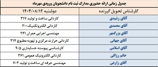 دانشجویان ورودی مهر 1404 توجه داشته باشند که پس از اتمام فرآیند تحویل حضوری مدارک، دسترسی دانشجویانی که مدارک خود را تحویل نداده اند به سامانه بوستان قطع خواهد شد و ایشان امکان اخذ کارت ورود به جلسه برای شرکت در امتحانات را نخواهند داشت. لذا حتما در مهلت تعیین شده مقرر نسبت به تحویل فیزیکی مدارک خود اقدام فرمایید.