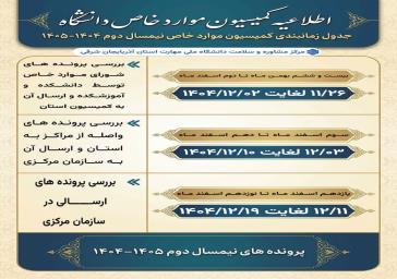 جدول زمانبندی کمیسیون موارد خاص دانشگاه ملی مهارت در نیمسال دوم 1404-1405